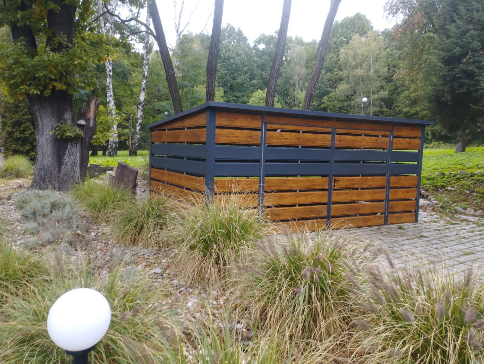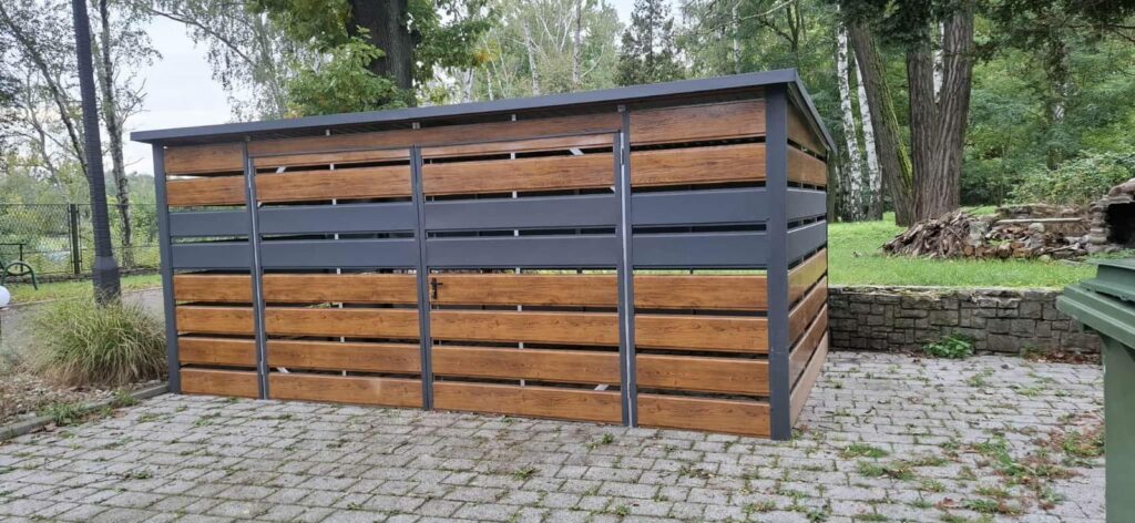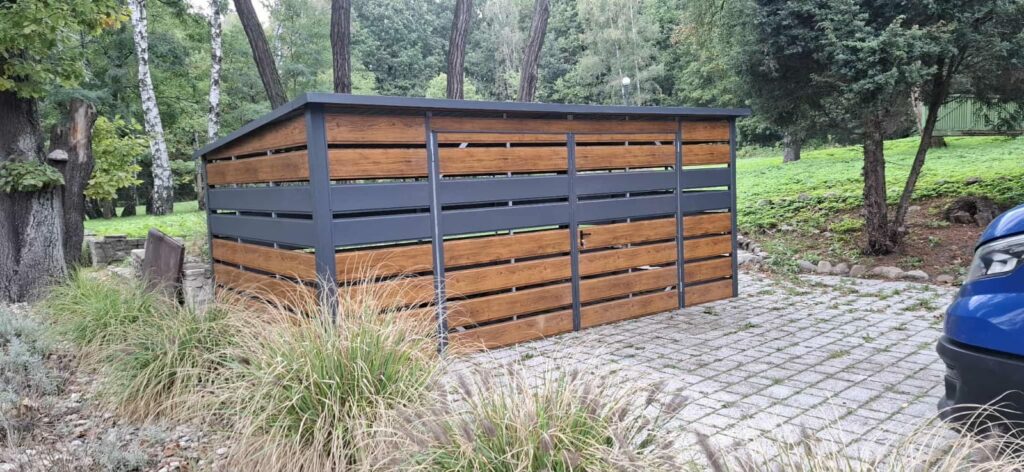 Wiaty śmietnikowe i schowki tworzymy na bazie mocnej konstrukcji stalowej z profili ocynkowanych. Solidny szkielet zapewnia stabilność, odporność na wiatr oraz trwałość na długie lata użytkowania — nawet w wymagających warunkach zewnętrznych.